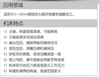 本机床系加工钢球的专用机床,适用于直径3~25mm钢球的软磨和硬磨加工。